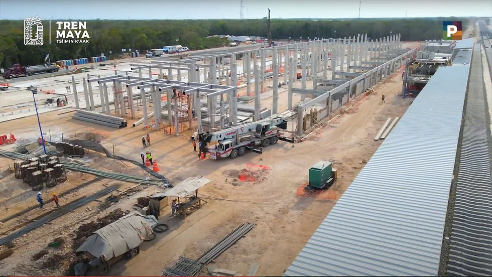Refirió que en la estación Cancún Aeropuerto se construye un taller y cochera, y una base de mantenimiento en la estación Valladolid, además de que se intervienen y mejoran las zonas arqueológicas de Chichen Itzá y Ek Balam, donde se construyen Centros de Atención a Visitantes.
