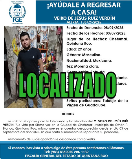 Localizan con vida a seis nayaritas reportados como desaparecidos en Othón P. Blanco; FGE desactiva fichas de búsqueda