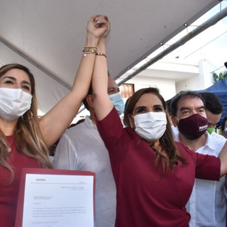 La senadora Marybel Villegas Canché afirmó estar “muy contenta” por acompañar a Mara Lezama, presidente municpal de Benito Juárez, a su inscripción como candidata a gobernadora, afirmando que ha llegado el momento de la unidad.